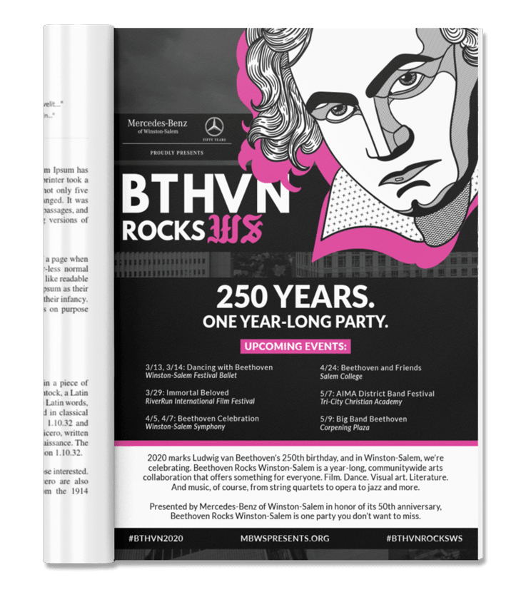 - A black-and-pink design balanced three key elements: Beethoven, the year-long celebration and the 50th anniversary of Mercedes-Benz of Winston-Salem.